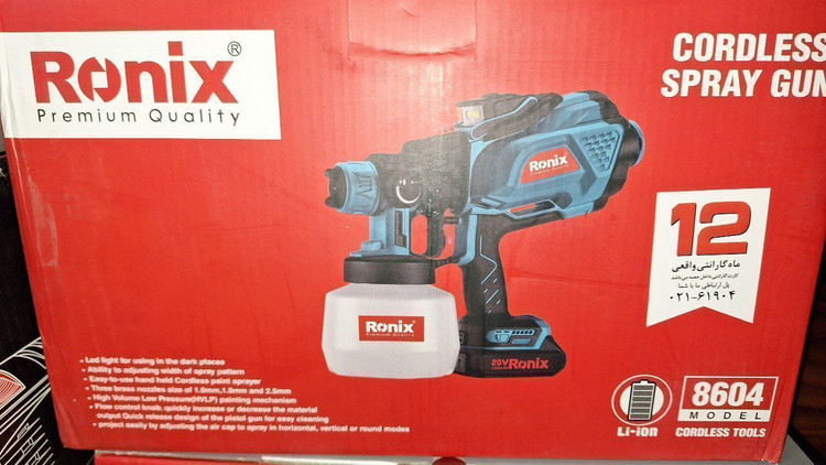 پیستوله رنگ پاش شارژی رونیکس مدل 8604 ظرفیت ۲۰ ولت