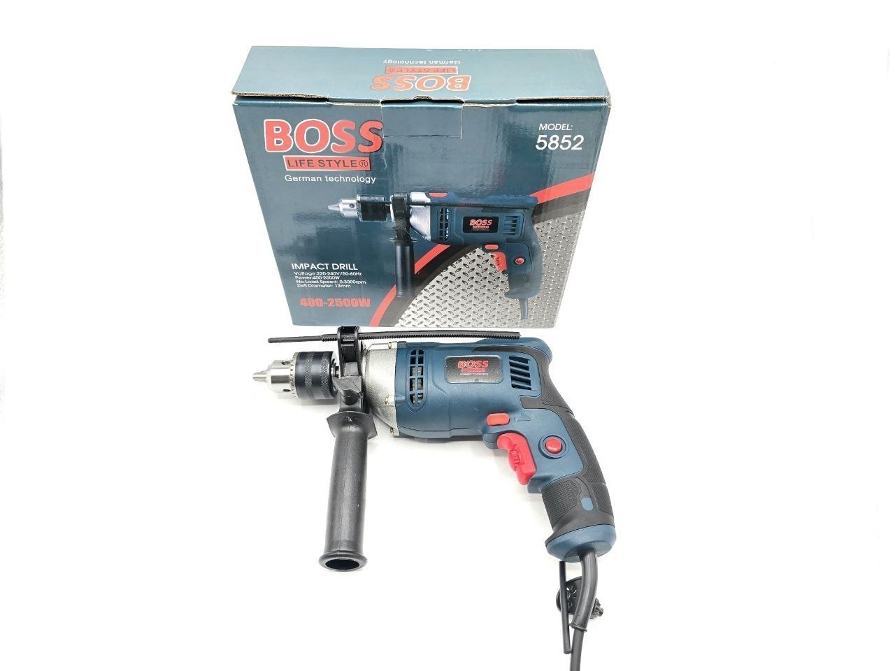 ⭐ دریل ۱۳ چکشی نیم تنه فلزی باس ✔ ۲۵۰۰ وات ✔ نیم تنه فلزی واقعی ✔ قابلیت چکشی ✔ سه نظام سایز ۱۳ ✔ دور متغیر ۳۰۰۰_۰ دور بر دقیقه(دیمر دار) ✔ چپگرد و راستگرد ✔ سبک و خوش دست